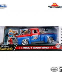 – Kendaraan Ford F100 1:24 tahun 1956 ini menampilkan Supergirl yang populer dalam pakaian DC Bombshells-nya di seluruh dekorasi mobil.