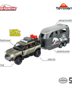 Majorette – Land Rover Defender dengan trailer kuda – kombinasi kendaraan/trailer premium dengan mainan kuda, efek cahaya dan suara, berbagai fungsi, untuk kolektor dan anak-anak berusia 3 tahun ke atas