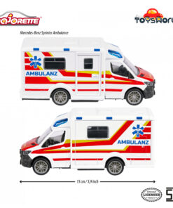 • Untuk anak usia 3 tahun ke atas – Kendaraan mainan berukuran 15,0 x 5,5 x 6,5 cm dan dirancang berdasarkan ambulans Jerman. Ini adalah mainan yang sempurna untuk calon paramedis muda, dan juga bisa menjadi barang koleksi yang hebat!