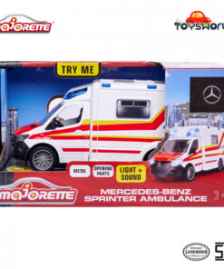 Majorette – Ambulans Mercedes-Benz Sprinter – Model premium, dengan efek cahaya dan suara, ban karet, berbagai fungsi, kendaraan mainan orisinal untuk anak usia 3 tahun ke atas